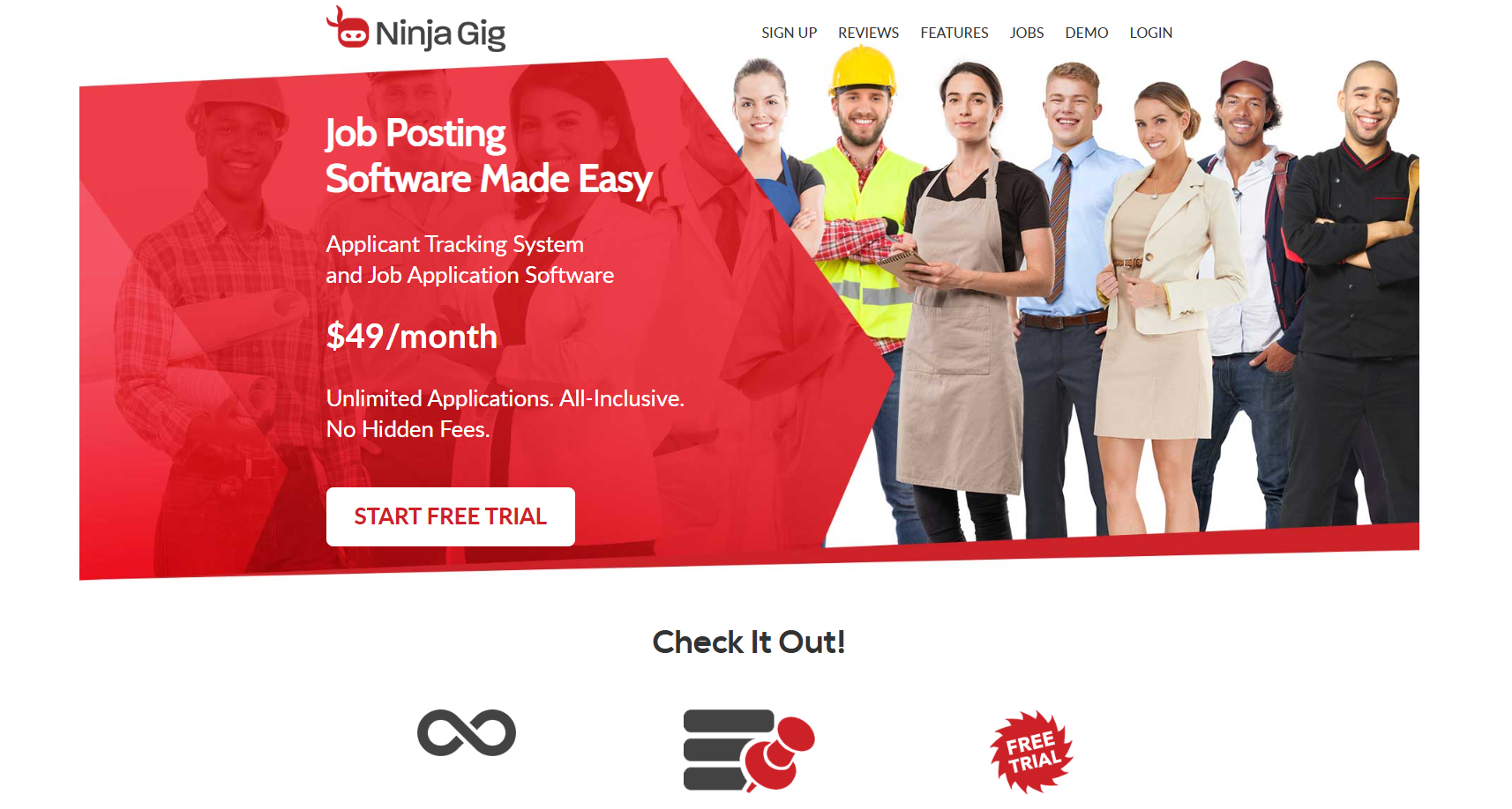 Thereafter, Ninja Gig only costs $49 per month, including unlimited job postings, up to 10 free team members, and no hidden fees, making this one of the best-priced ATSs available. Plus its super easy to cancel at any time.